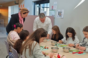 C’est une expérience culinaire d’exception que les 24 élèves d’une classe de CM1/CM2 de l’école élémentaire Saint-Firmin-des-Vignes à Amilly (Loiret, 45) ont eu la chance de vivre le 2 juin 2025. Vainqueurs du concours « 2 sur set ! », organisé par le collectif Poissons, Coquillages et Crustacés, les enfants et leur institutrice, Sandrine Couturier, ont participés à un atelier culinaire pédagogique. Cet atelier etait organisé et animé par Nicolas Rota, formateur et consultant chez Cuisines & Saveurs, une entreprise amilloise spécialisée dans les ateliers culinaires pour enfants et séniors. Une occasion festive pour les élèves de découvrir et/ou d’apprécier les goûts des produits aquatiques !