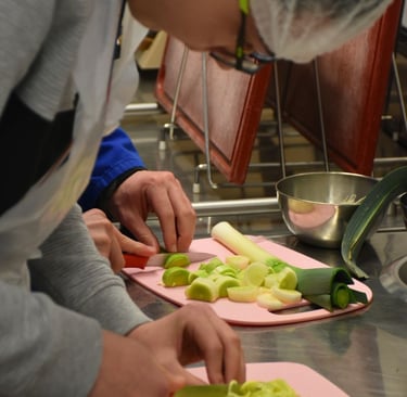 Les élèves de 4ème accompagnés par des élèves en CAP PSR ont mis la main à la pâte pour préparer des tartes aux poireaux sous la conduite du chef Nicolas ROTA. L’Open Agrifood célèbre ici son 80ᵉ atelier cuisine, organisé dans le cadre de son projet d’éducation à l’alimentation, touchant 20 établissements et 30 classes en Région Centre-Val de Loire ! Ce mardi 1er avril, Sonia Aubert-Seyres, Associée Expert-comptable et Commissaire aux comptes d’ORCOM | Expertise-comptable, audit, conseil, est venue assister à un atelier cuisine avec deux classes de l’EREA Simone Veil à Amilly (45) parrainées par le cabinet d’expertise comptable dans le cadre du projet d’éducation à l’alimentation.